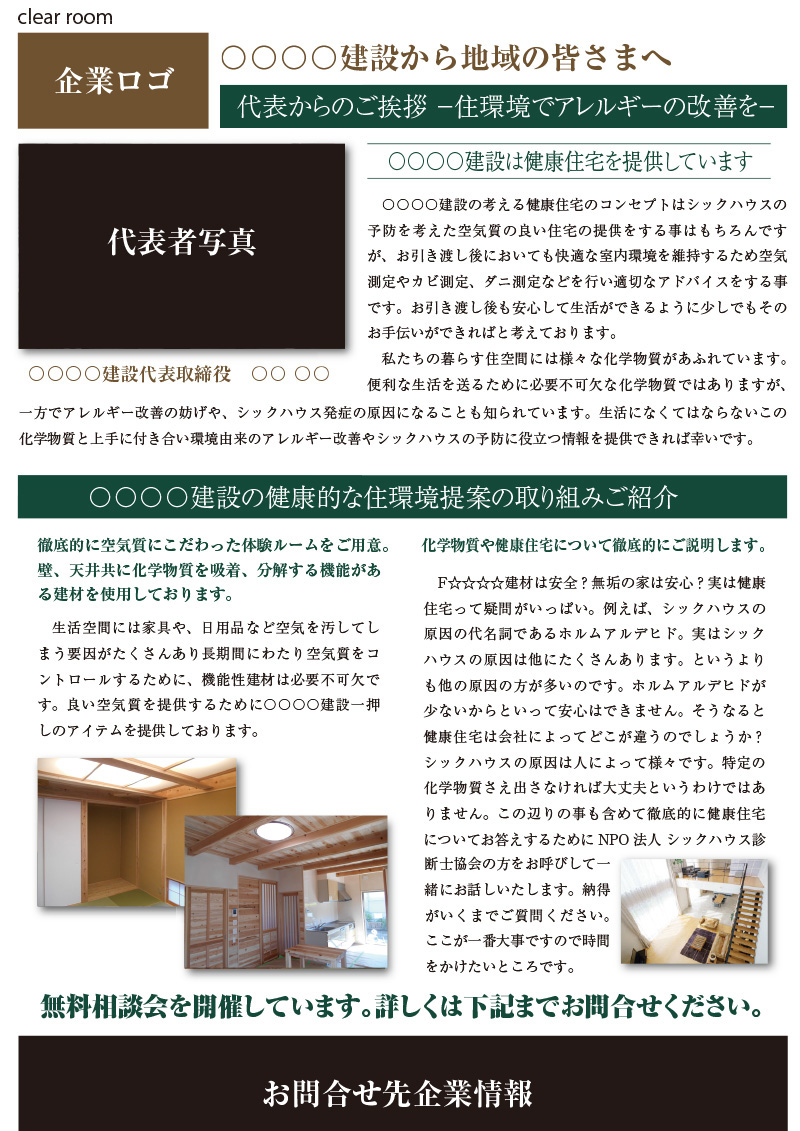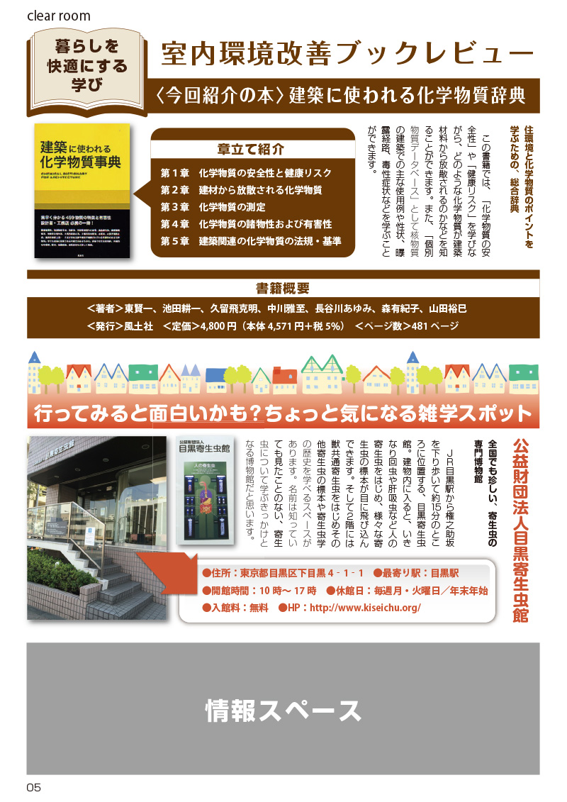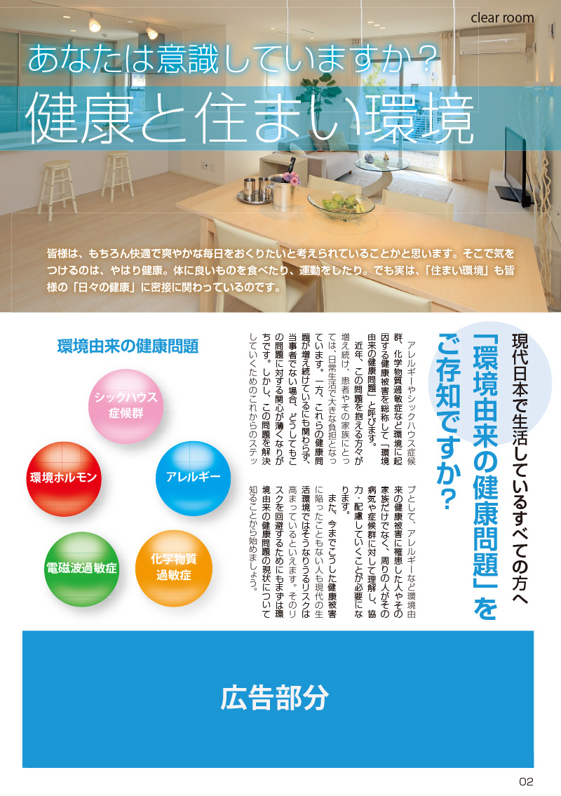 シックハウスを含む環境由来の健康問題に関するお役立ち情報を掲載している会報誌です。啓発や広告宣伝にご活用いただけます。