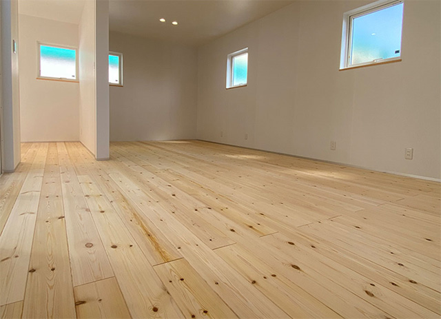 木材の柔らかな手触りや風合いは、日々の暮らしを豊かに彩り、 心地よさをもたらすことができます。私たちは、厳選した素材を使い、 細部までこだわり抜いた家づくりを実現しています。 ![]() 素足で気持ちいい無垢床材が標準仕様